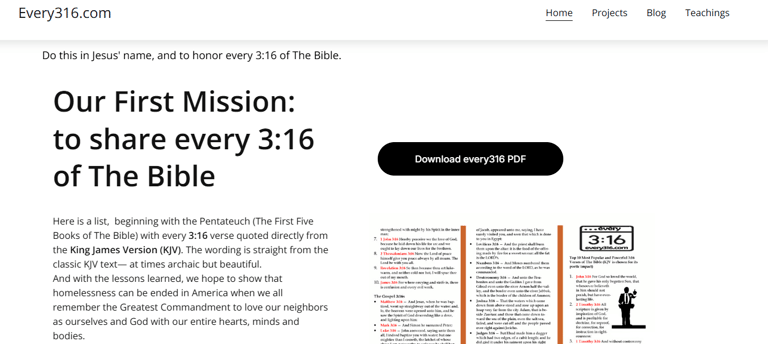 I will continue to add content to this website, including my original plans for every316.com. Independent of my prophetic mission; I have found the every316 concept to be a great way to explore the Bible's interconnectedness and interwoven narrative; including how it leads us to the end-times and to the concept of the Remnant Church.